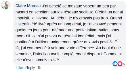En utilisant le masque à vapeur Clarity™ 5 à 10 minutes par jour, les glandes se dilatent, le liquide durci se ramollit.